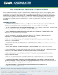 Code of Safe Practices – Adjustable Suspended Scaffolding by Editorial Team | Feb 16, 2023 Download Preview Filename: Code-of-Safe-Practices-for-Suspended-Scaffolds_FINAL.pdf File Type: pdf File Size: 121 KB Categories: Quick Reference Guide